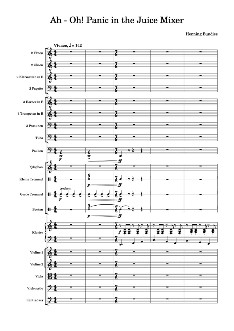 Violoncello solo, Piccolo, 2 Trompeten, Posaune, Tuba, Percussion