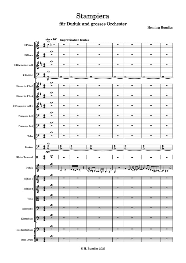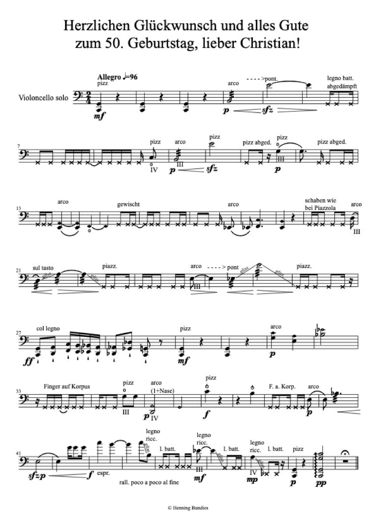 Violoncello solo, Piccolo, 2 Trompeten, Posaune, Tuba, Percussion