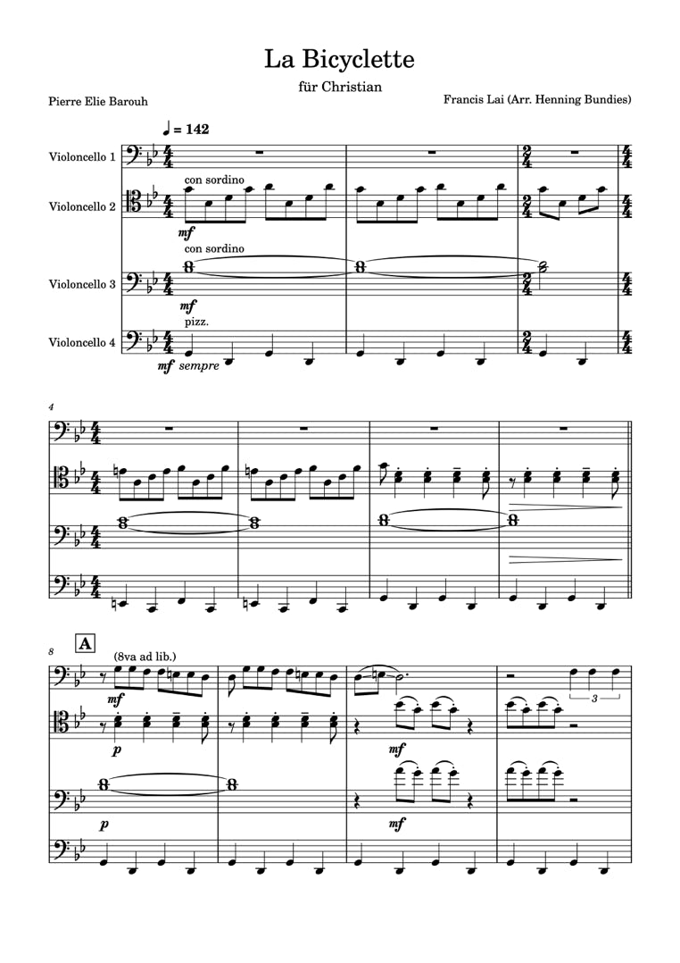 2022 Arr.: Francis Lai, La Bicyclette 4 Violoncelli