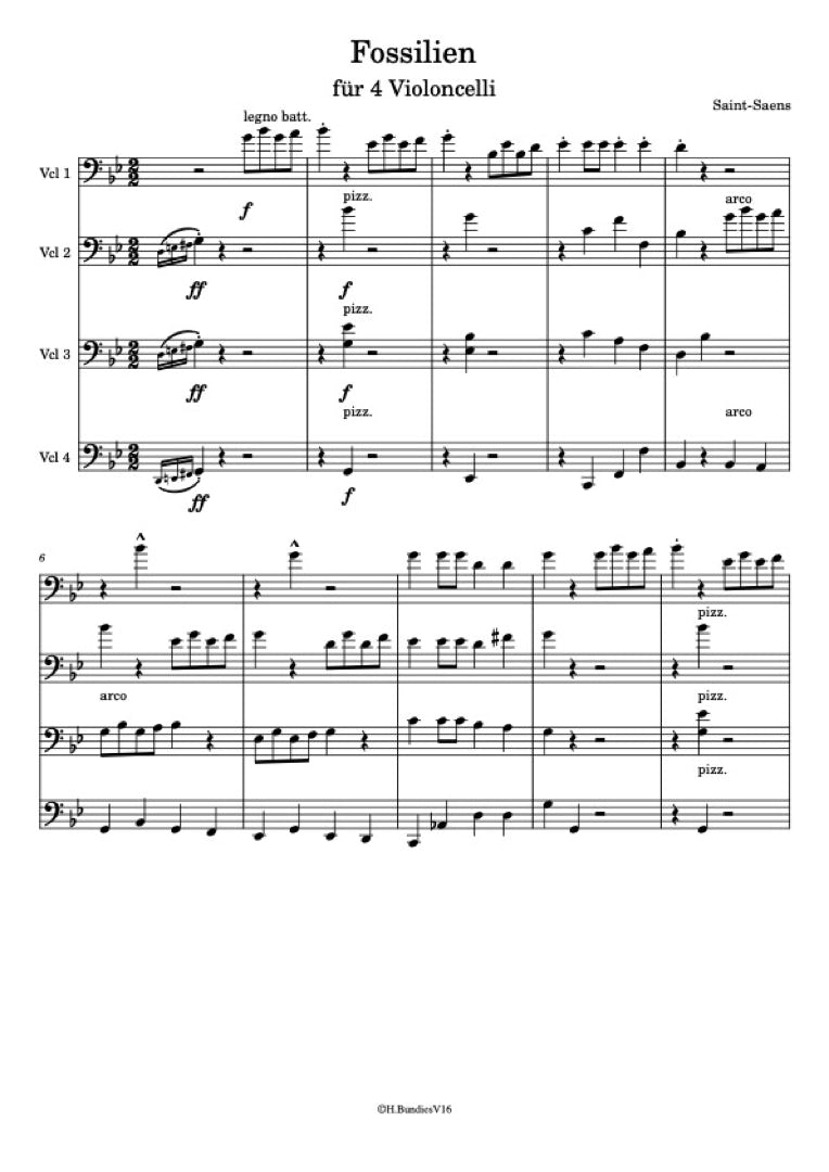 Arr.: Saint-Saens, Fossilien 4 Violoncelli